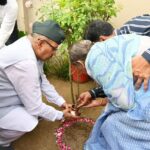 शहीद सम्मान यात्रा 2.0 के तहत शहीद लेफ्टिनेंट प्रतीक आचार्य के आंगन की मिट्टी का संग्रहण करते सैनिक कल्याण मंत्री गणेश जोशी