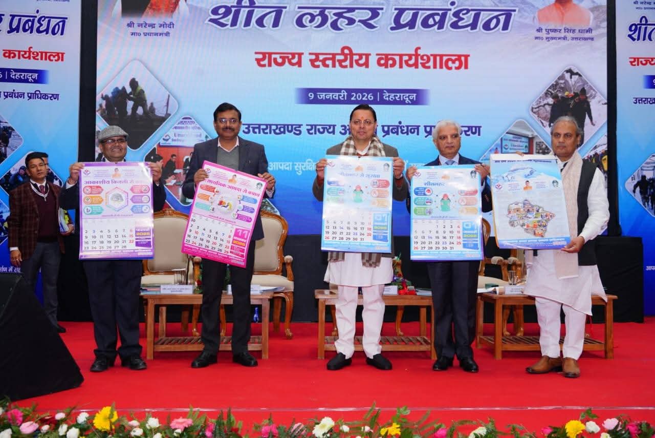 देहरादून। मुख्यमंत्री पुष्कर सिंह धामी ने शुक्रवार को सर्वे ऑफ इंडिया ऑडिटोरियम, हाथीबड़कला में ‘शीतलहर पूर्व तैयारी’ विषय पर आयोजित एक दिवसीय कार्यशाला का शुभारंभ किया। इस अवसर पर उन्होंने शीतलहर, बाढ़, मॉक अभ्यास, हवाई यातायात सहायता की एस.ओ.पी., आपदा प्रबंधन विभाग के नववर्ष कैलेंडर 2026 एवं आपदा प्रबंधन हस्तपुस्तिका का विमोचन किया।