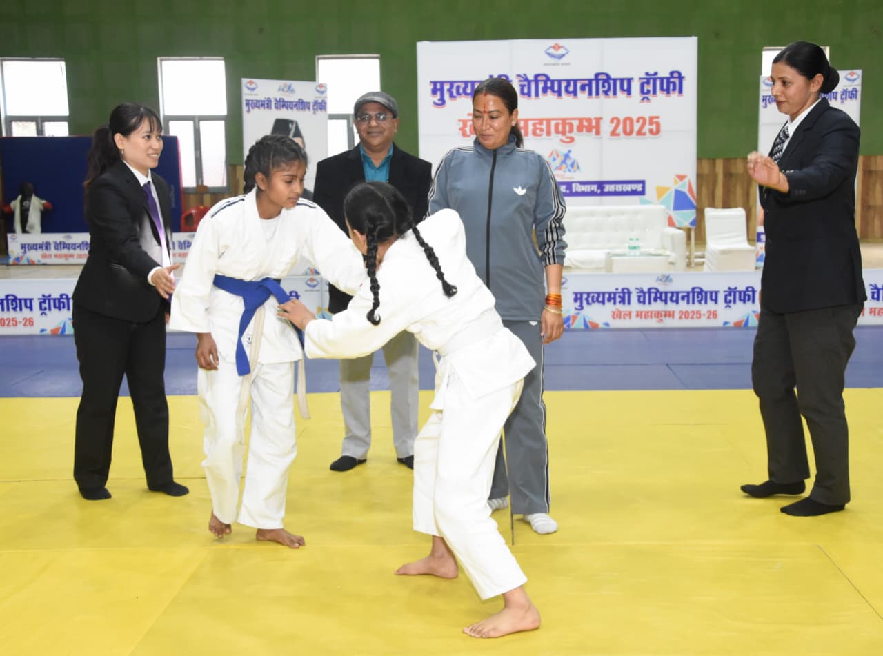 देहरादून : मंगलवार को खेल मंत्री रेखा आर्या ने युवा केंद्र आमवाला में आयोजित मुख्यमंत्री चैंपियनशिप ट्रॉफी में जूडो के विजेताओं को मेडल देकर सम्मानित किया। यहां संसदीय क्षेत्र स्तरीय प्रतियोगिता का आयोजन किया जा रहा है।