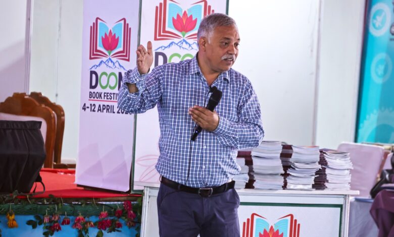 देहरादून, 9 अप्रैल, 2026ः देहरादून के परेडग्राउंड में नेशनल बुक ट्रस्ट के पुस्तक महोत्सव में गुरुवार को स्कूली बच्चों ने पत्रकार राजेश पांडेय से कहानियां सुनीं और संवाद किया। यह संवाद पर्यावरण सुरक्षा एवं मानवता पर केंद्रित रहा। कहानी पेड़ घूमने क्यों नहीं जाता, पर कक्षा एक से पांच तक के बच्चों के साथ संवाद काफी रोचक और ज्ञानवर्धक रहा।